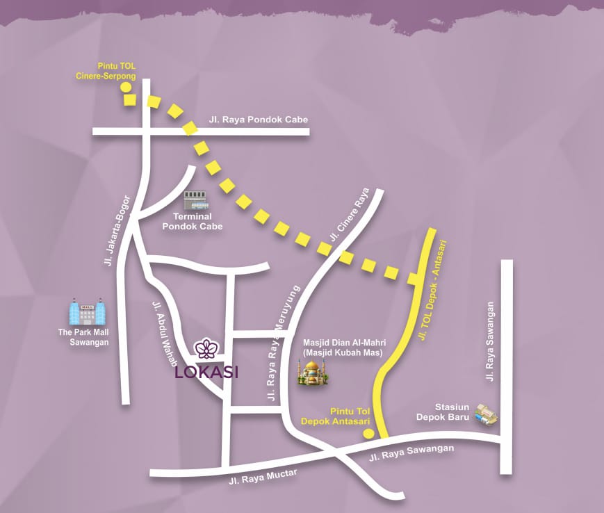 Masih tersedia 7 unit siap bangun dengan design berkelas. Menjadikan hunian dengan harga terbaik di selatan Jakarta dengan berbagai kemudahan akses, lingkungan ramah anak, asri dan bebas banjir. Berada di Ring I Pusdiklat Kemendikbud, Tol Cinere – Serpong dan Depok – Antasari  hanya memerlukan 15 menit waktu tempuh ke Pintu tol Pamulang dan Pintu Tol Limo, serta 27 menit waktu tempuh ke Lebak Bulus Jakarta Selatan.